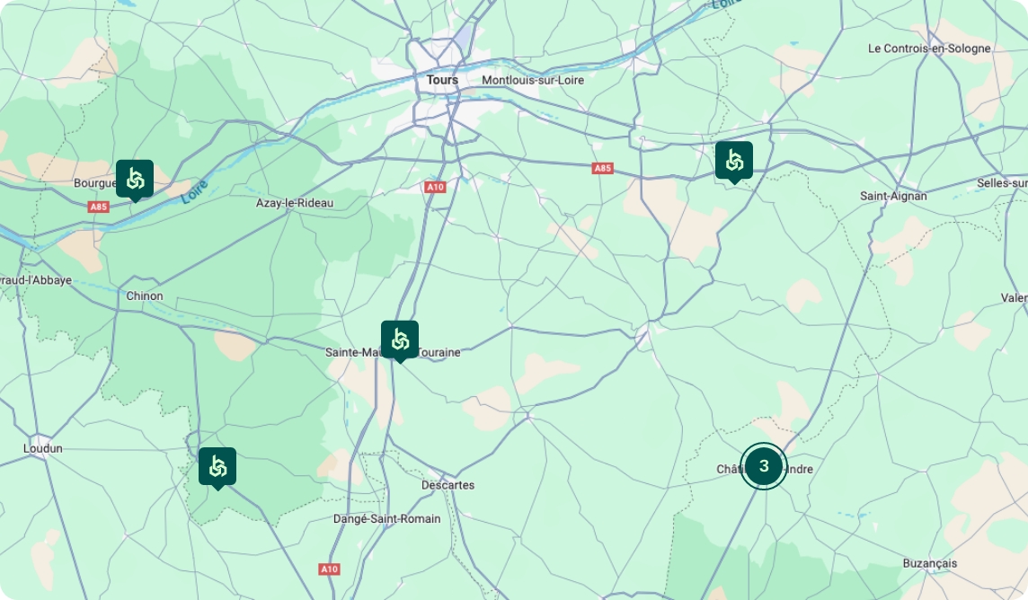 Présente sur l’ensemble du Centre-Val de Loire et au-delà, Ligerienne Granulats s’appuie sur un maillage territorial dense pour garantir une logistique fluide et réactive. Cette proximité nous permet d’assurer des livraisons rapides, de réduire les distances de transport et de limiter notre empreinte carbone.